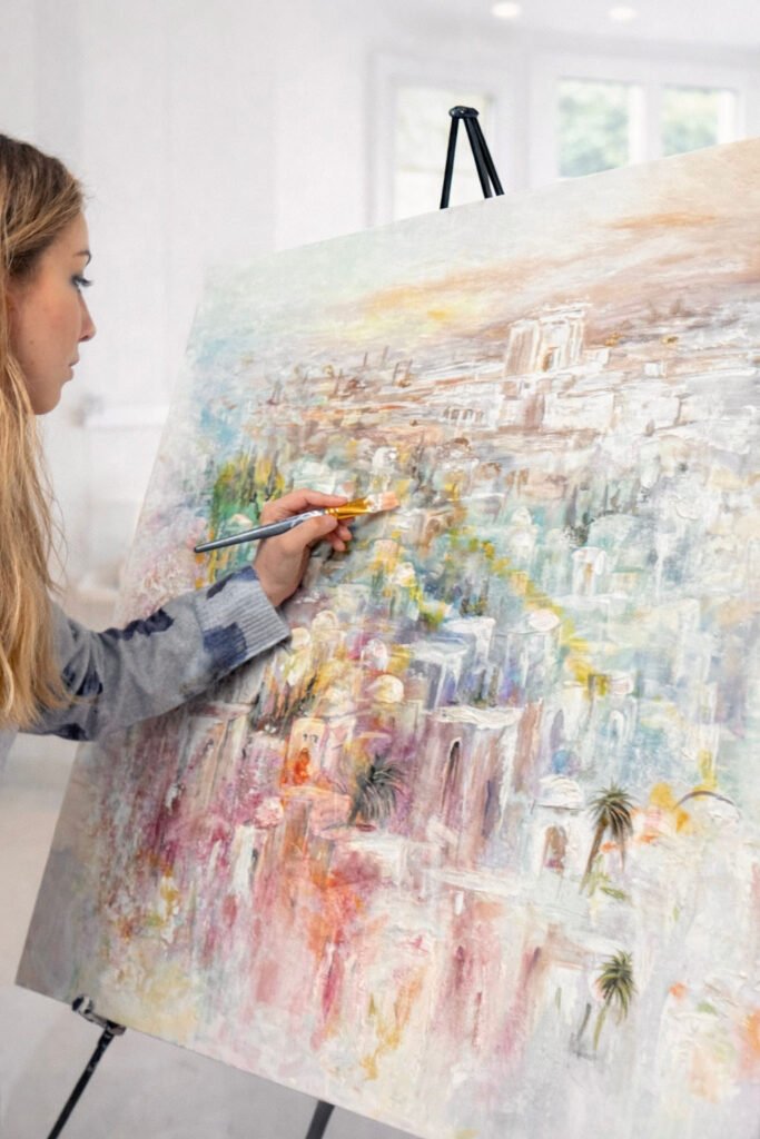 Hi! I’m a Judaica artist based in Lakewood, NJ, working with acrylic, oil, watercolor, and resin to create artwork that brings beauty, inspiration, and meaning into Jewish homes.