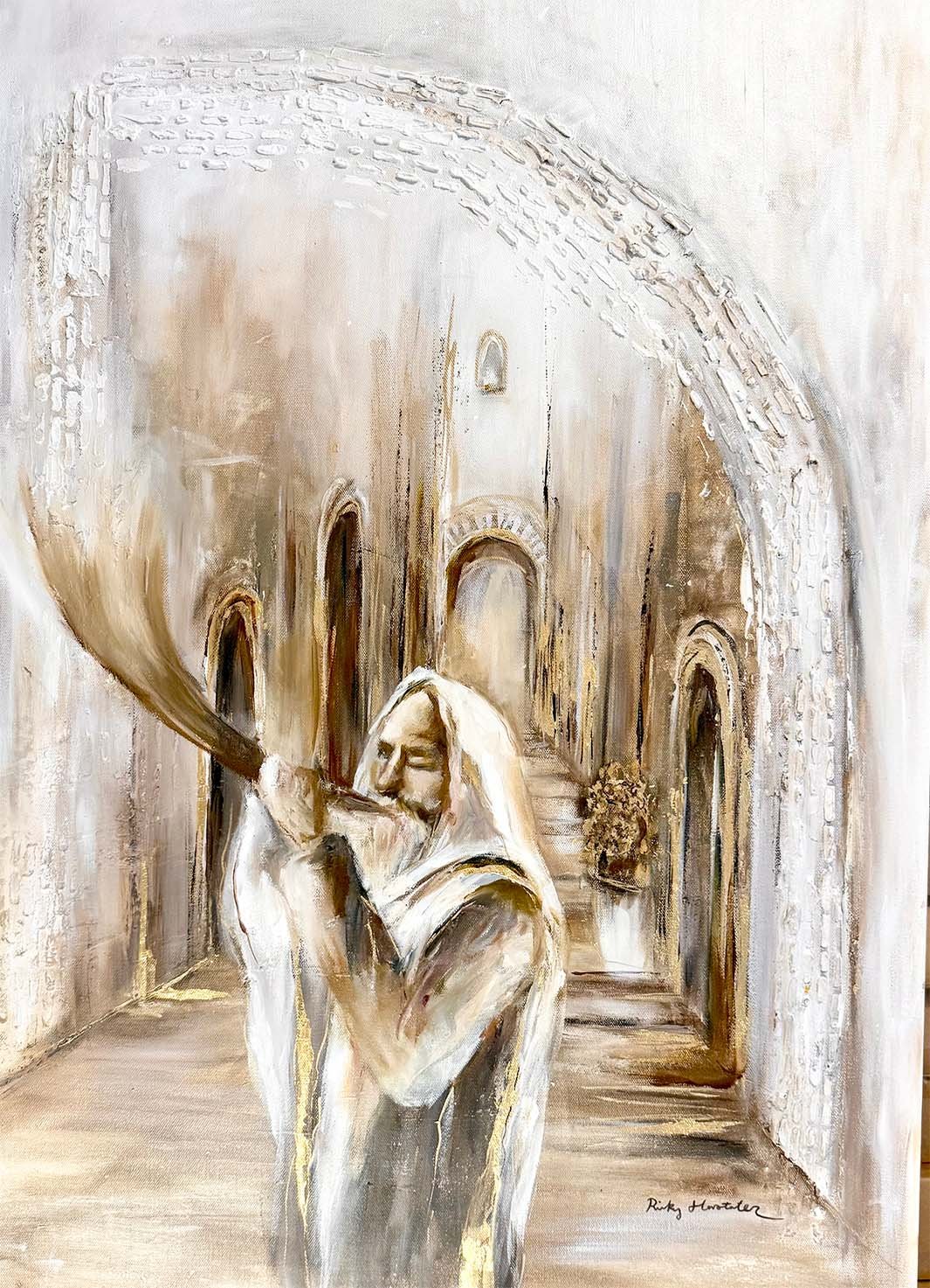 Gold accents and textured depth illuminate the Elul shofar, echoing the warmth and spirit of repentance.