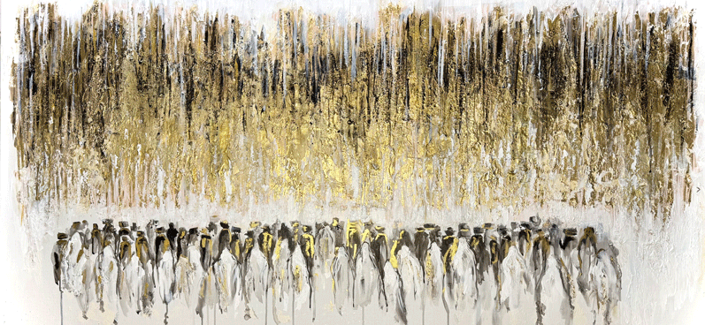 This gold kosel artwork is with textured shimmering metallic detail. A modern, spiritual wall piece inspired by Jerusalem’s timeless beauty and light.